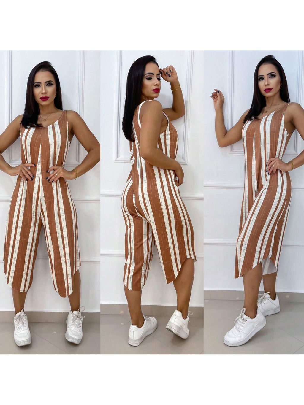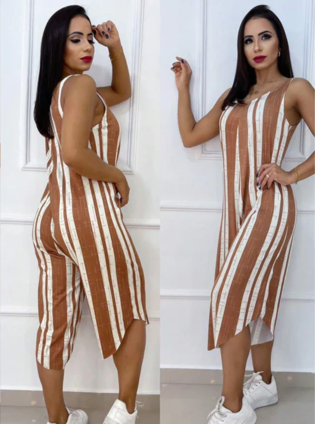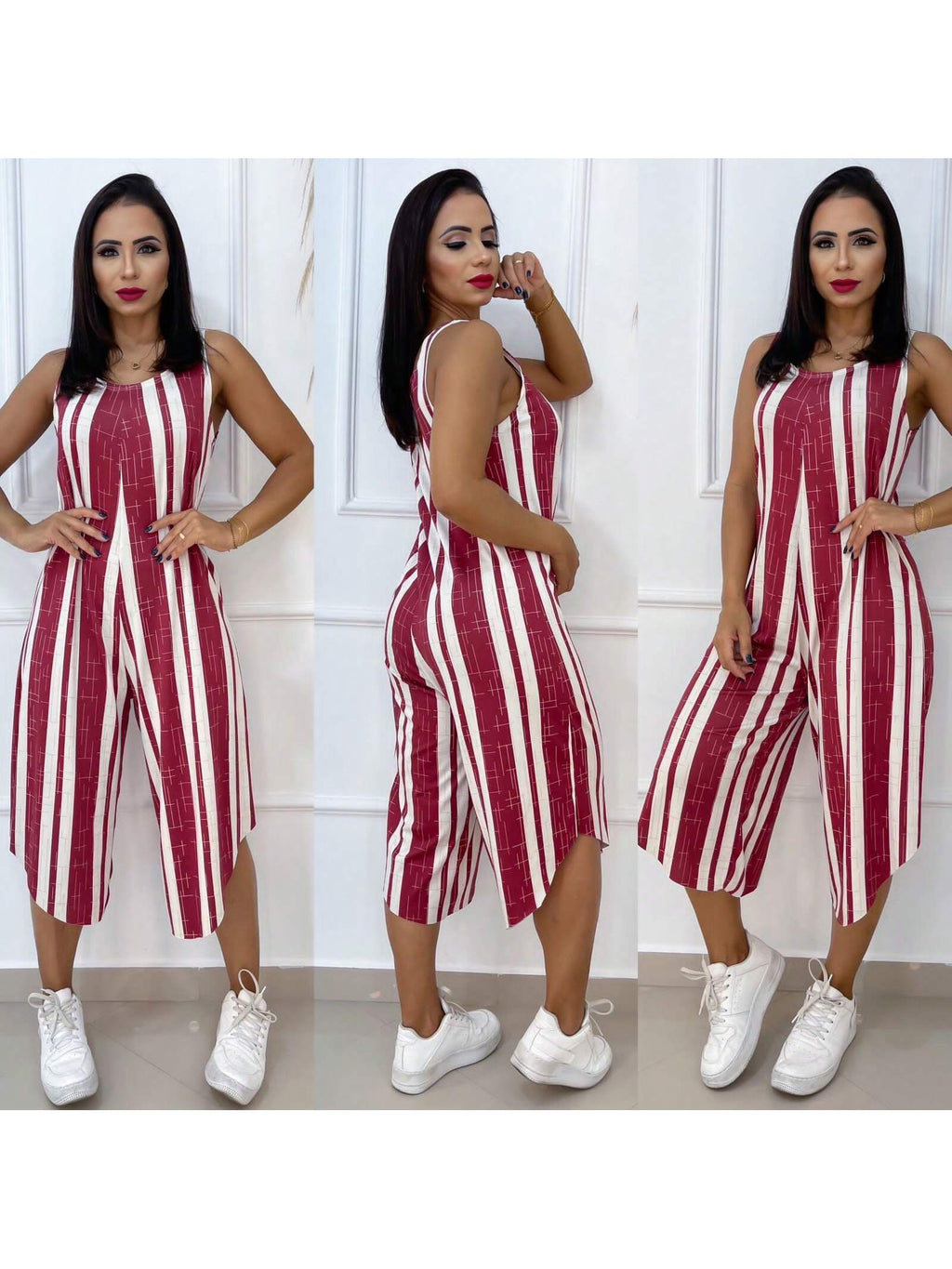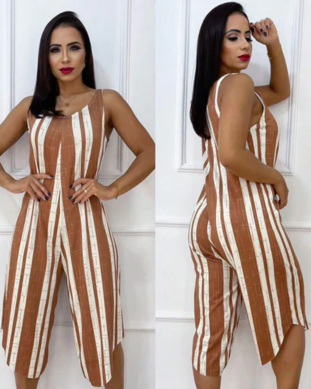 O macacão listrado que está fazendo mulheres comuns parecerem executivas de alto nível sem gastar como se estivessem em uma grife porque alonga a silhueta de forma quase estratégica não amassa durante o dia inteiro e custa menos do que você imagina sendo aquele tipo de achado raro que parece caro mas não é! Pode parecer exagero mas este macacão listrado acessível está transformando a imagem de mulheres comuns em presença executiva marcante porque cria um efeito de alongamento imediato e mantém aparência alinhada o dia todo sem aquele aspecto amassado que denuncia preço baixo Características: Confortável